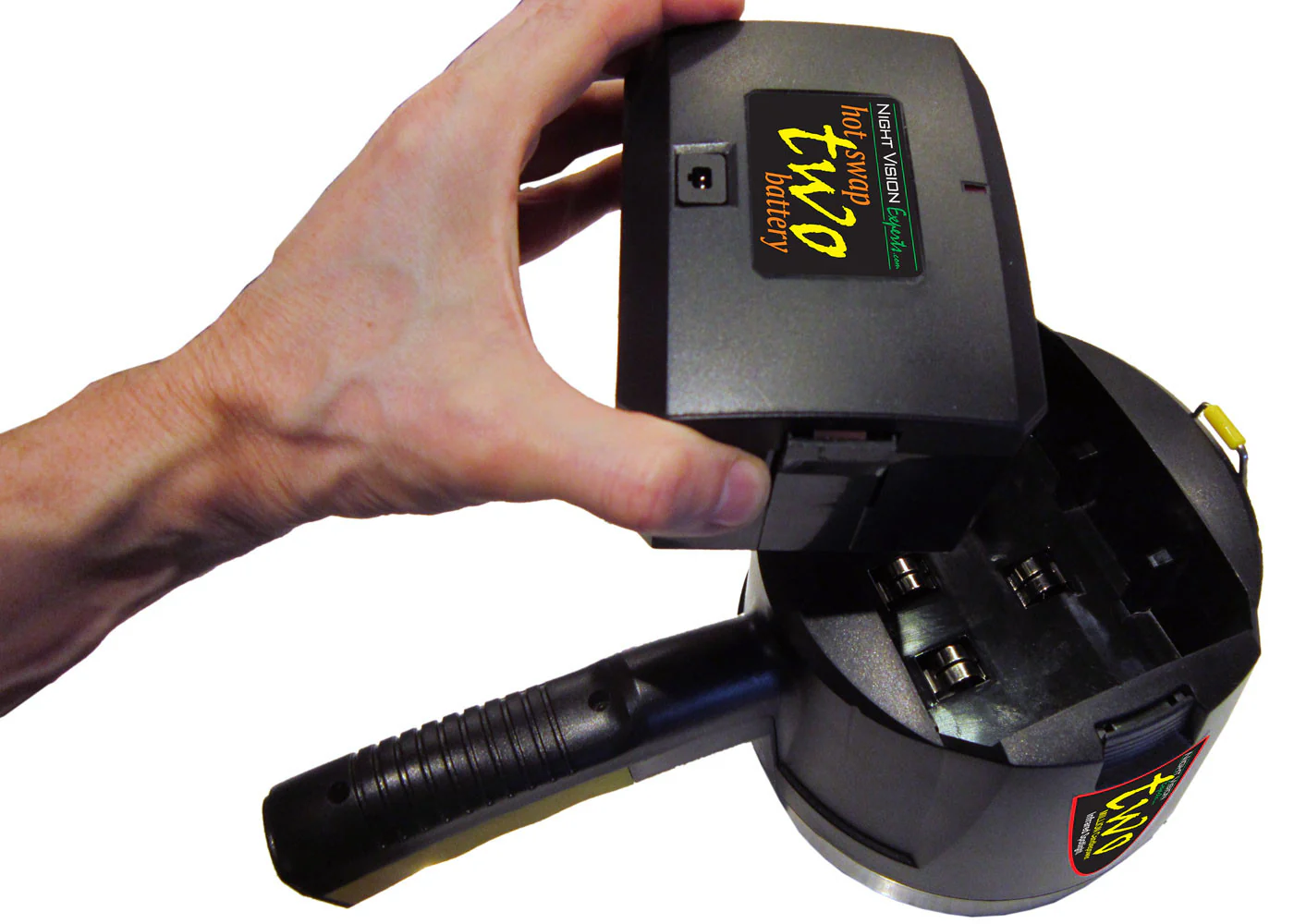The latest generation of our top-rated 2-Million Candlepower Hot-Swap Infrared Spotlight fires an intense beam of covert infrared light more than 250 yards, 11% further than previous versions. And now when you've depleted the spotlight's battery power, the removable hot-swap rechargeable battery can be swapped out in seconds with an available spare battery.